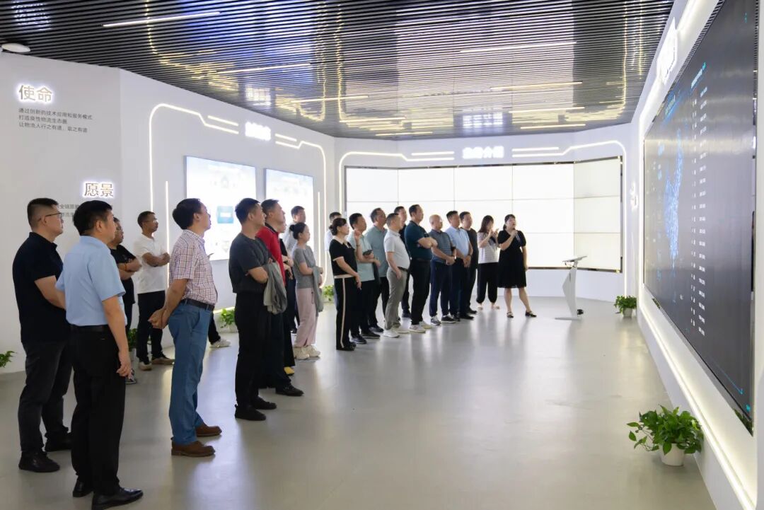 刘和邦一行先后参观了维天运通数字化展厅、“红运力”党建展厅,详细了解了维天运通的发展历程、业务模式与布局,以及党建与业务经营、企业文化、社会责任深度融合的创新实践和成果。