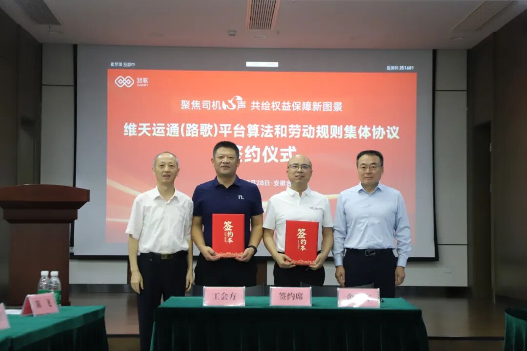 9月28日,由中国海员建设工会、安徽省总工会、安徽省交通工会、合肥市总工会、高新区总工会等单位指导,合肥维天运通信息科技股份有限公司工会主办的“聚焦司机心声 共绘权益保障新图景”维天运通(路歌)平台算法和劳动规则协商恳谈会成功举行。本次恳谈会围绕“收入与规则透明、安全与经营成本、人身权益和职业尊重、协商协调机制”四项核心议题展开实质性对话,并最终签订“维天运通(路歌)平台规则集体协议”,绘就了兼具温度与力度的实践样本,彰显各方对新就业形态劳动者权益保障的责任担当。
